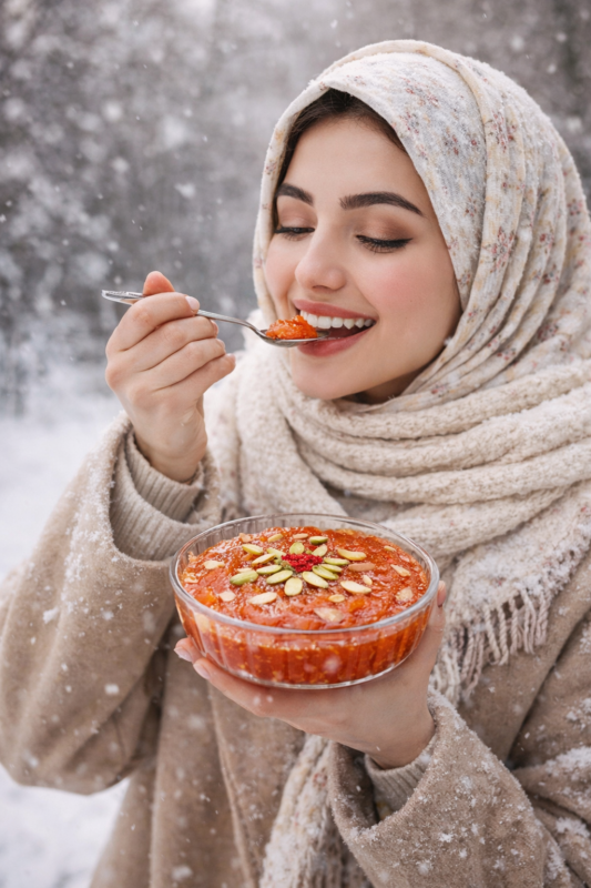 نکته: اگر میخواهید کاملاً به سبک بحرینی نزدیک شوید، مقدار روغن کمی بیشتر از حلواهای معمولی است — همین باعث کشسانی و براقی حلوا میشود.
