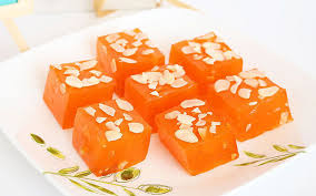 یک نمونه حلوا مسقطی با رنگ مصنوعی در تصویر زیر مشاهده میکنید.